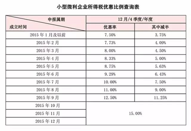 小型微利企業(yè)所得稅優(yōu)惠比例查詢表