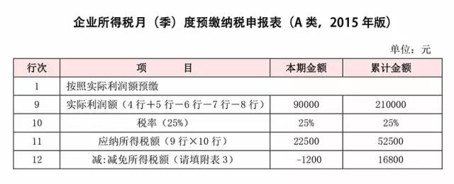 企業(yè)所得稅月(季)度預繳納稅申報表(A類,2015年版)