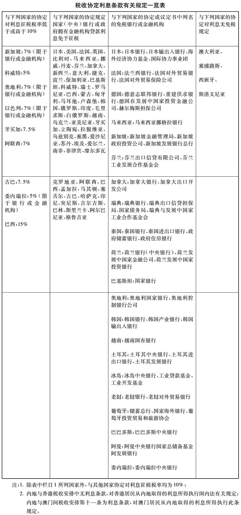 附件:稅收協(xié)定利息條款有關(guān)規(guī)定一覽表