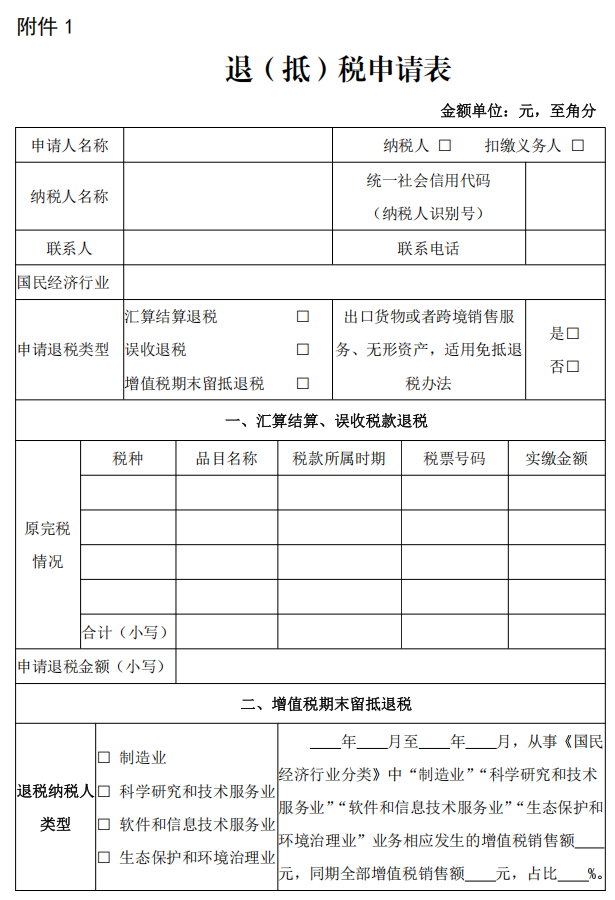 一、本表適用于辦理匯算結(jié)算、誤收稅款退稅、增值稅期末留抵退稅。